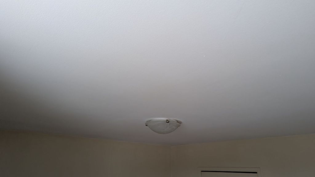 First scraping, then plastering, then sanding, then more plaster, more sanding, then paint on the ceilings, walls, baseboards, and doors.